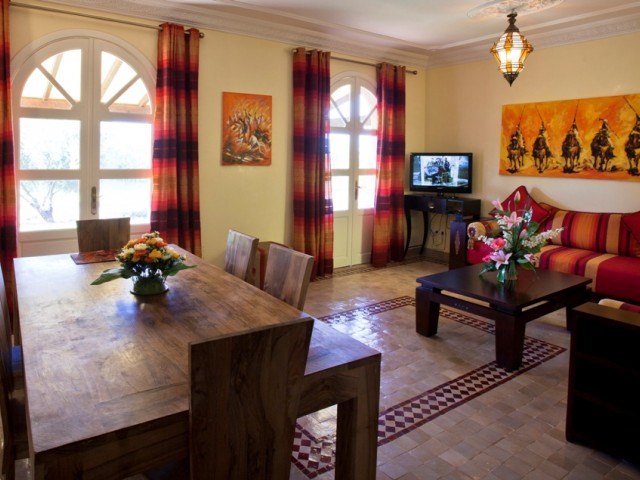 Durant votre séjour,rendez vous au petit déjeuner ou vous attend un plateau généreux et varié de crêpes,M'semmen,baghrir,miel,confiture,beurre,jus d'orange,croissants.. Midi et soir,notre chef cuisinier vous invite à découvrirles délices de la cuisine marocaine,traditionnelle et raffinée,avec produits frais de saison. Les repas peuvent être pris dans l'élégant restaurant ou dans le jardin arboré près de la piscine.