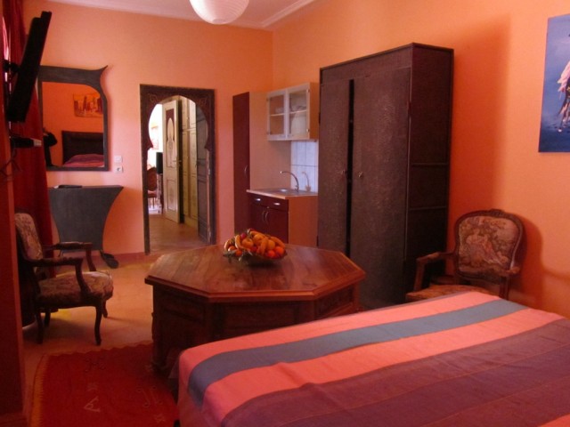 Chambre trés calme pour 2 personnes,salle de bain privé avec serviettes de toilette,et une décoration traditionnelle marocaine. TV+climatisation