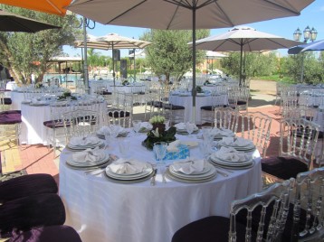 Entre amis ou en famille partagez votre repas au bord du jardin arboré près de la piscine