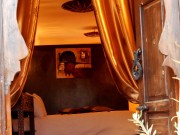 Découvrez cette atmosphère, ce mélange de couleurs pastelles, orange et jaunâtre qui révèle la culture des peuples arabes et qui vous fait pénétrer dans un monde coloré tout en douceur... Cette chambre dispose d'une climatisation réversible. Parmi les services fournis par le Riad d'Airain, vous disposez d'un sèche cheveux, de peignoirs et serviettes, d'un coffre fort,d'un mini-bar, du gel douche, du shampooing et du lait corporel. Le petit déjeuner est également inclus dans la prestation, il vous sera servi au patio ou en terrasse ( en chambre en option à 5 €/pers et par jour). Sur demande lors de votre réservation,nous sommes en mesure de transformer le lit (160x200) en deux lits simple(twin).