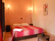 Jolie chambre double équipée de 1 lit double king size, et située au 1er étage avec vue sur le balcon du patio et le salon lounge. Climatisation réversible chaud/froid. Produits de toilette, sèche cheveux, serviettes de bain. Salle de bains avec baignoire indépendante en tadelakt et wc. Poss. lit supplémentaire pour 1 personne : 20 €.