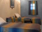 Grande chambre twin, double ou triple située au premier étage et équipée de 2 lits 1 pers. (pouvant être assemblés en un lit king size) et 1 lit d'appoint 1 personne (sur demande). Climatisation réversible chaud/froid. Produits de toilette, sèche cheveux, serviettes de bain. Salle de bains avec douche indépendante en tadelakt et wc séparés.