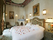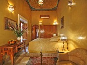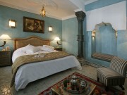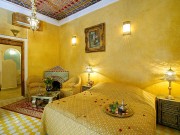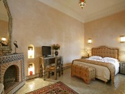 Chacune des 6 grandes chambres du Riad possède son identité propre, avec 6 mètres de hauteur sous plafond. Personnalisées par une couleur dominante et décorées d'objets choisis avec soin, elles réunissent des lits King size, face à de grande cheminée et coin salon.