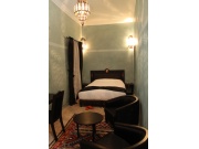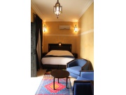 Grande suite de 26m2 climatisée donnant sur le patio fontaine, équipée d’un grand lit (1.60/1.90),d’une penderie, d’une télé plasma, d’un coffre fort, d’un coin salon, d’une grande salle de douche, et de toilettes un bidet privatives.