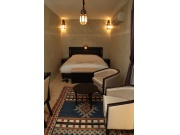 Grande suite de 23m2 climatisée donnant sur les deux fontaines du patio et de l’étage, équipée d’un grand lit (1.60/1.90),d’une penderie, d’une télé plasma, d’un coffre fort, d’un coin salon avec bureau, d’une grande salle de douche, et de toilettes un bidet privatives.