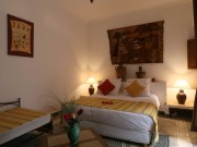 Situado en la planta baja, puede ser adecuado para personas con movilidad reducida.Consta de una cama 160 x 200 (separables) y un meridiano de 80 x 190.(ideal para la cama de un niño). Vasos encontrados en Zagora, lienzo pintado por Mali y telas bereberes conforman esta decoraci?n auténticas. Continuidad en su cuarto de baño en las paredes de tadelakt natural. Aire acondicionado reversible proporciona comodidad y modernidad en esta secuela de los colores c?lidos del sur de Marruecos.