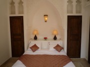 Muy grande Suite en la planta baja que da sobre el patio y la piscina, decorada en los tonos beige y azules Majorelle. 1 gran cama 180 x 200 y una cama extra 90 x 200 en el gran salÓn dotada de una espléndida chimenea.Enorme cuarto de baÑo con ducha y aseos en tadelakt color azul Majorelle. Batas y secador del pelo.