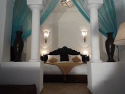 Bonita Suite sobre la terraza a la decoracion africana. 2 camas 90 x 200 cm rapprochables si necesario y un pequeÑo salÓn. Posibilidad de una cama extra 90 x 200 si necesario.ClimatizaciÓn reversible. ConexiÓn WIFI gratuita. Bonito cuarto de baÑo con ducha y aseos en tadelakt beige muy claro.Batas y secador del pelo.