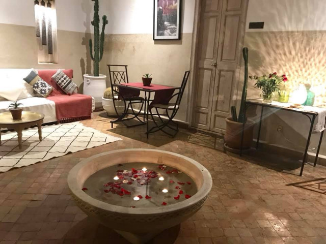 "j ai passé 4 jours dans ce riad, avec ma maman nous y venions pour nous reposer et profiter des soins, la chambre était trés jolie le riad sobre et joliment décoré avec beaucoup de gout, une petite musique zen pour l'ambiance, les repas de spécialités