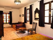 RIAD SOUAFINE, suite de 50m² composée d'une chambre (grand lit double) et d'un salon bureau avec lit d'appoint. Douche et WC séparés. Capacité 3 personnes.