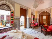 la suite Perle du sud est une grande chambre double décorée selon les traditions marocaines.Elle reflète les charmes de l'orient. Elle est équipée d'un lit 160, d'une salle de bain privée, de la climatisation et d'un coin salon.