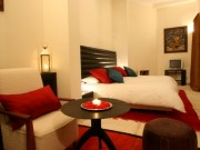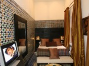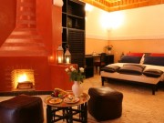 habitacion estÁndar situado en el primer pisoUno de los séquitos(apartamentos) mÁs calurosos de Riad con tonos naranjo de su tadelakt que da un ambiente particularmente descansado. Esta continuaciÓn consta de la cama doble, el dressing, el espacio salÓn muy cosy. Su sala de baÑo zellige Burdeos comprende una ducha, una baÑera y dobla pilones
