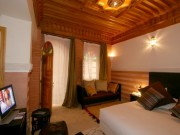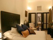 Habitacion superior situada en el 1r piso con vista sobre el patio y la piscinaEsta suite guardÓ su techo de origen. Consta de la cama doble, el dressing y de un muy bello cuarto de baÑo zelliges azul con ducha baÑera y dobla pilones
