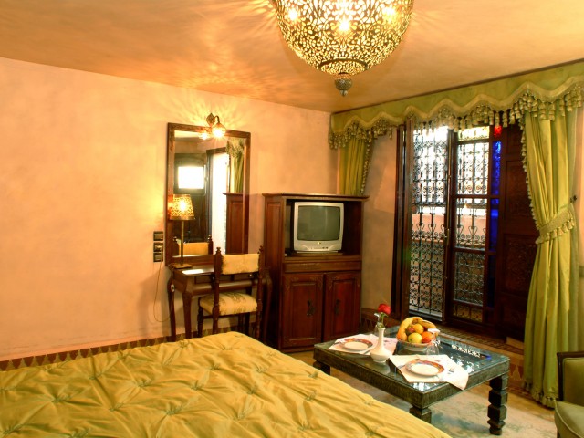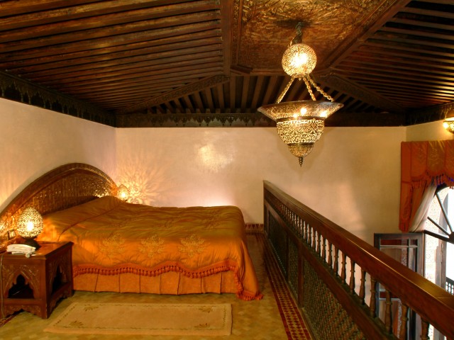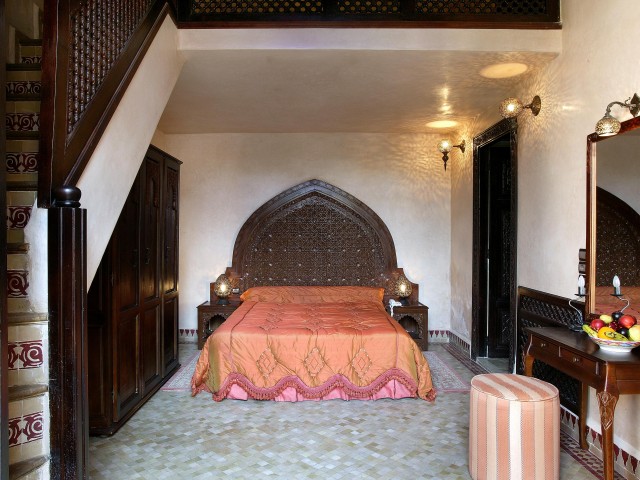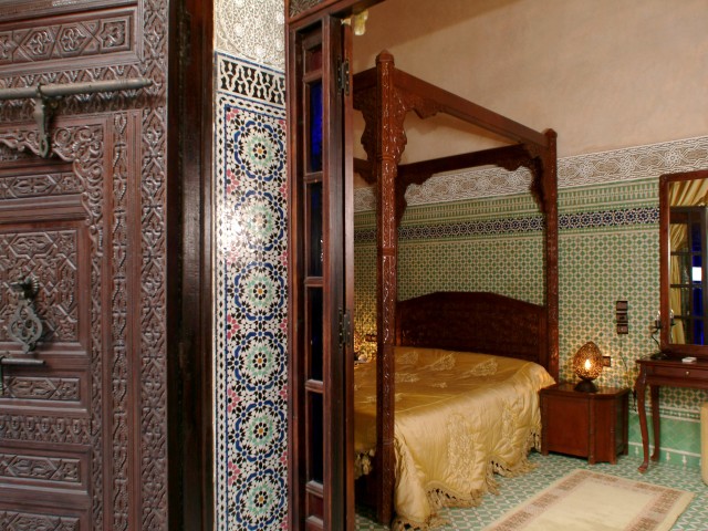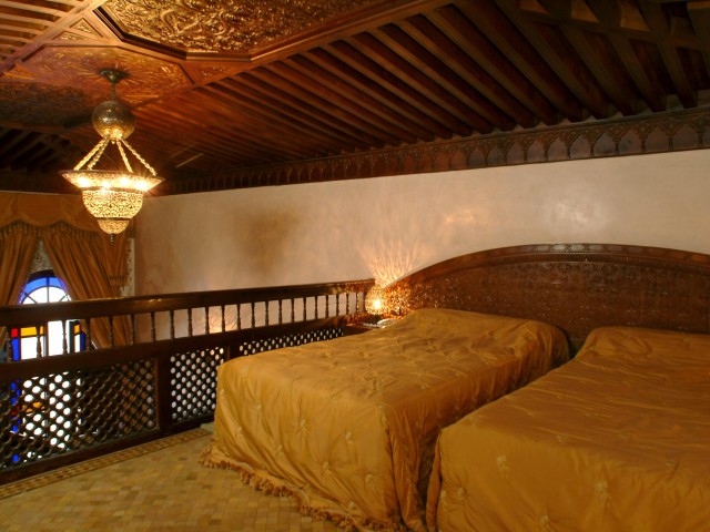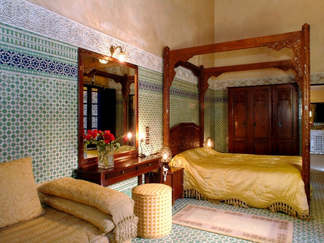 Suntuoso Palacio del siglo XIX, en otro tiempo residencia de un visir, la Riad Shéhérazade se encuentra en el centro de la Medina de Fez. El lujo y la sobriedad de su arquitectura Árabe-andaluza, la presencia del agua de sus fuentes y los perfumes de su jardÍn con palmeras centenarias forman una combinaciÓn que garantizan la distensiÓn tranquila y la voluptuosidad.