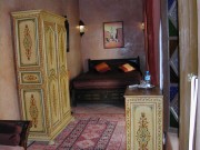 Una junior suite con una cama doble 160, un asiento que puede acomodar a una persona adicional en la sala de estar con su gabinete y su fuerte pecho Un cuarto de tadelak y sus baÑos. Las toallas y secador de pelo se ponen a tu disposiciÓn. Ubicada en la terraza del primer piso. Usted vivirÁ en los colores de Marrakech, un verdadero viaje... Capacidad 2\/3 personas.