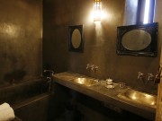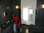 La Grise, l'ombre peut être sensuelle quand les lumières jouent avec la matière.Chambre tout en tadelakt anthracite. Lit king size, petit coin salon.TV, lecteur DVD, Accès ADSL par prise Ethernet fournie dans la chambrela salle de bain est également en tadelakt, avec une grande baignoire.WC indépendants.Air conditionné