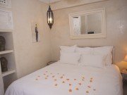 ...La Petite Berbère, tout en tadelakt blanc, comme un coconLa plus petite chambre du Riad, toute simple et charmante.Un grand lit ou 2 petits lits, au choix.Tv, accès ADSL.La salle de bain tout en longueur ne possède pas de baignoire, mais une très grande douche, traitée comme un petit hammam.