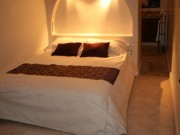With l' stage, giving on the gangway of the patio, pretty following tons of blackcurrant with a natural bedhead in tadelakt, a small living room with a briquette chimney. Bed linen of great quality. Bed: reads double into 160. Bathroom in tadelakt and zelliges with shower. Air-conditioning heating