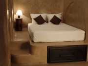 With these steps leading to the bed and a mattress without spring, this room is very original.It is located on the 1st floor and overlooks the grand patio. It is equipped with a double bed of 160 cm. Bathroom (in brown and white zelliges), a shower and a toilet.At disposal: a magnifying mirror and home products (Soap hands, shower gel, shampoo and body lotion) This room also offers office space and enjoys a large storage drawer of a wardrobe and a safeReversible air conditioning (hot\/cold)